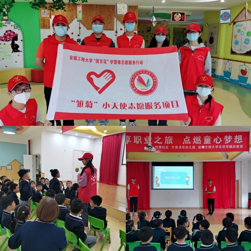 为响应tyc522cc太阳成集团“百花献礼”暨党史学习教育劳动月活动号召,推进新时代青年积极践行“奉献、友爱、互助、进步”的志愿精神,2021年5月19日,化环公司“雏菊”小天使志愿服务团队于竹秀社区幼儿园开展了一堂以“形形色色的职业”为主题的兴趣课。