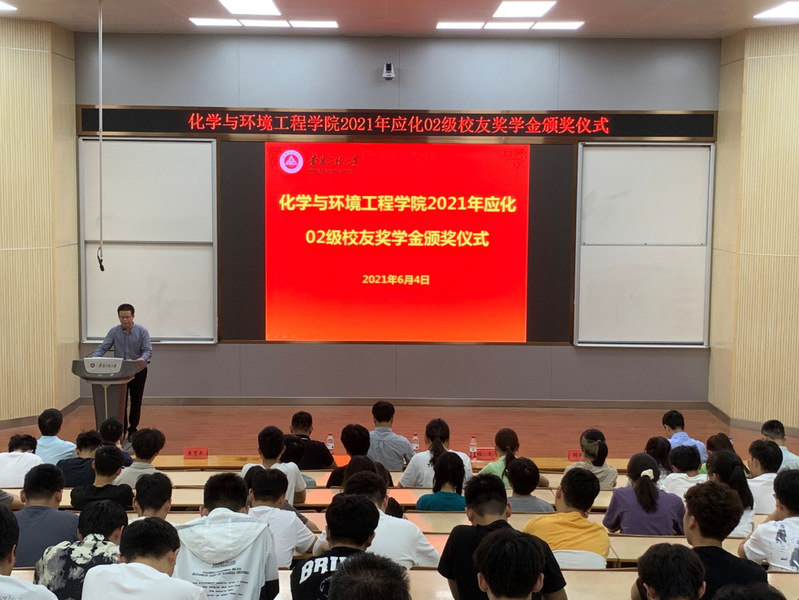 程亮代表员工向获奖同学表示热烈的祝贺,他讲述了自己的成长经历和奋斗的历程,讲述了员工奖学金的成立渊源,他表示要把爱心继续传承发扬,要鼓励更多的应化专业学子,希望学弟学妹们不负青春,以梦为马,不负韶华。