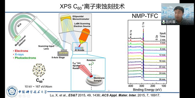 吕兴霖教授做了题为“高性能海水淡化膜材料的尝试与探索——从微界面表征到膜材料调控”的报告。吕教授以海水淡化膜材料的发展历程为主线,一一做了阐述。介绍了第一代海水淡化膜膜醋酸纤维素(CTA)膜的产生,通过改性,研究其物相及动力学过程,进行调控和优化;对于第二代聚酰胺(TFC)膜,详细阐述了基底层制备过程对TFC膜传质特性的显著影响,及其表征的困难和解决方法;展望了潜在新型的海水淡化膜材料,分享其课题组开展的二维纳米片材料膜的研究进展和成果。