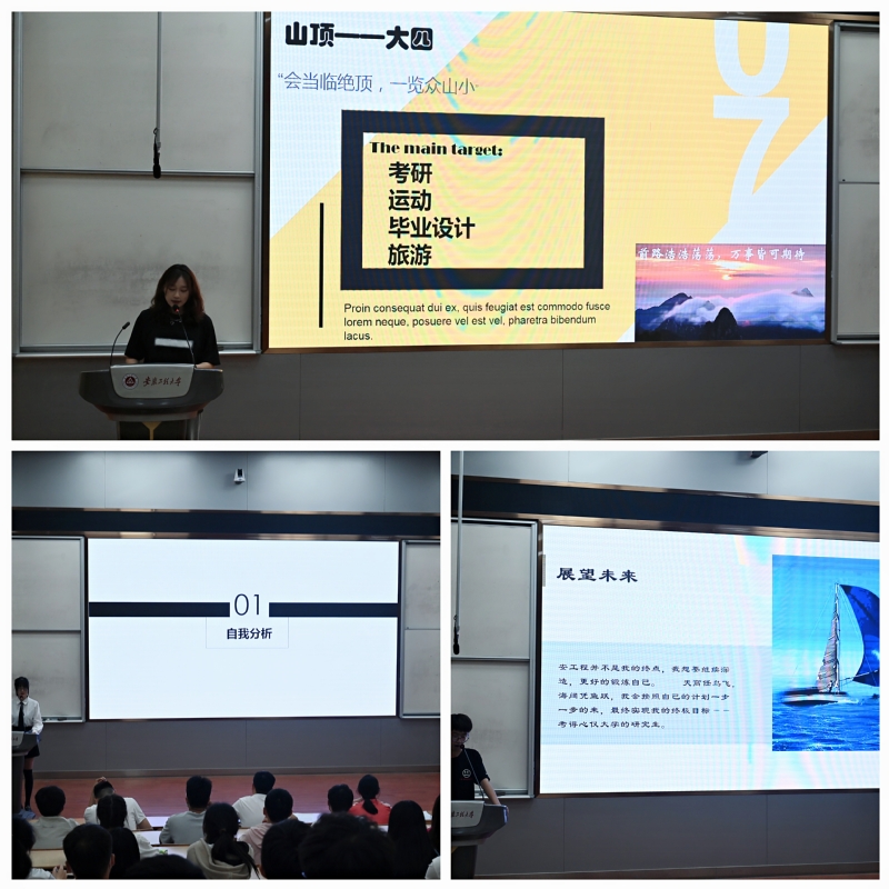 参赛选手们在进行比赛时,结合PPT演示文稿,充分发挥出个人主观能动性,并根据自己的职业价值观,综合分析社会环境、家庭环境、公司环境等各方面的因素确立一个符合自己现实情况的未来自我规划方案。每位同学演示后,评委老师还会就个人不同情况进行提问。本次比赛作品形式多样、风格各异,有着明确的自我分析、目标分析,能结合同学们们自身所处的环境设立合理的职业目标,表现了同学们对未来蓝图的认真规划,也体现同学们对未来美好的憧憬。整个比赛过程紧张有序,队员们的职业生涯规划设计作品整体结构完整性、逻辑清晰、条理清楚、详略得当、重点突出、职业生涯目标制定的贴切合理,得到了评委们的一致好评,充分体现出同学们们扎实的专业知识和较强的综合能力。