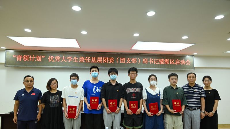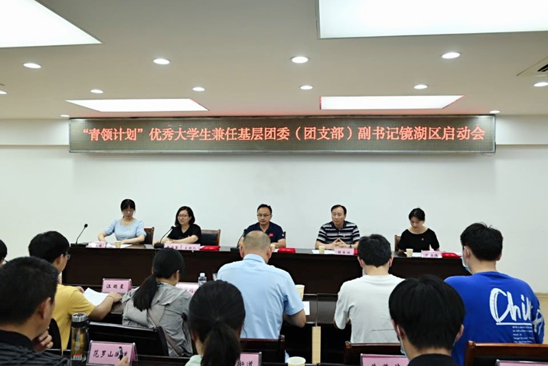 6月21日下午,太阳成集团tyc522cc遴选的13名“青领计划”优秀老员工来到镜湖区,与即将兼职的镜湖区10个街道或者社区负责人见面。镜湖区团委专门组织启动仪式。校团委书记郭广春、化学与环境工程公司党委副书记胡承功出席。镜湖区团委副书记张为蓉主持启动仪式。