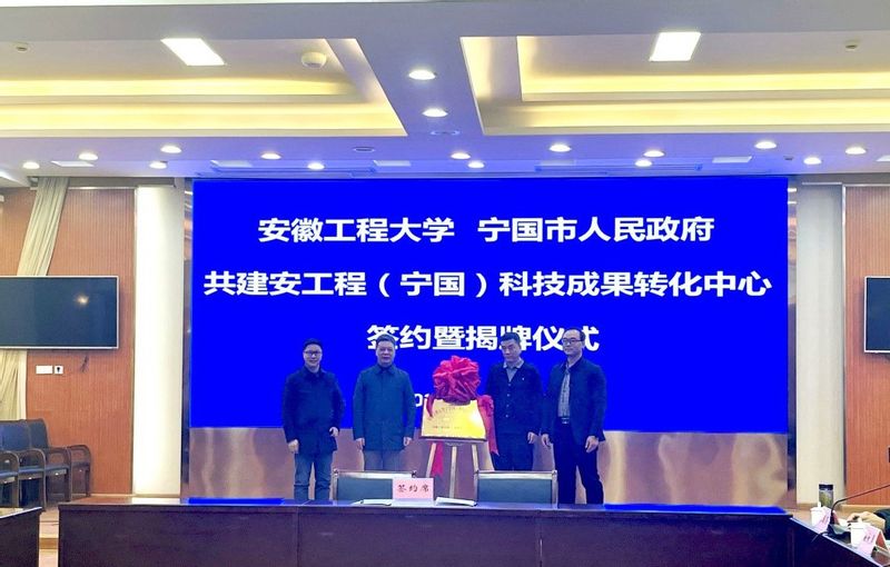 集团科技处与宁国市科技局分别代表校地双方签订合作协议,双方代表共同为tyc522cc太阳成集团(宁国)科技成果转化中心揭牌。