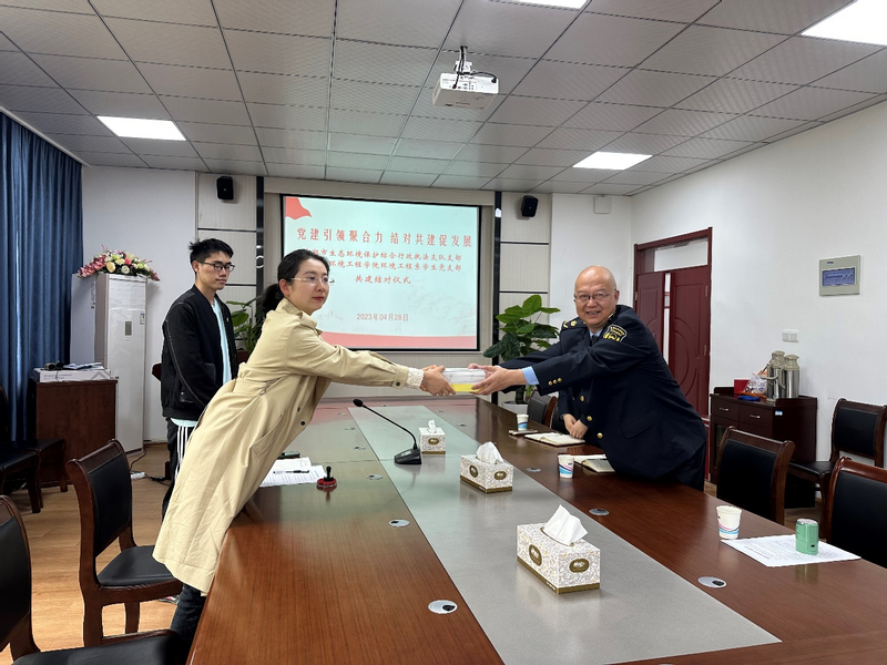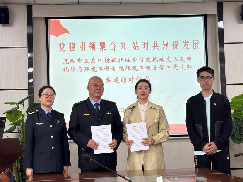 发挥党建引领作用,为支部建设增添新动力,4月28日上午,在化环公司会议室举行环境工程系员工党支部与芜湖市生态环境保护综合行政执法支队共建结对仪式,仪式由环工系员工支部支部书记王冰冰主持,芜湖市生态环境保护综合行政执法支队支部副书记任传军、人教科科长吕璐等人参加。