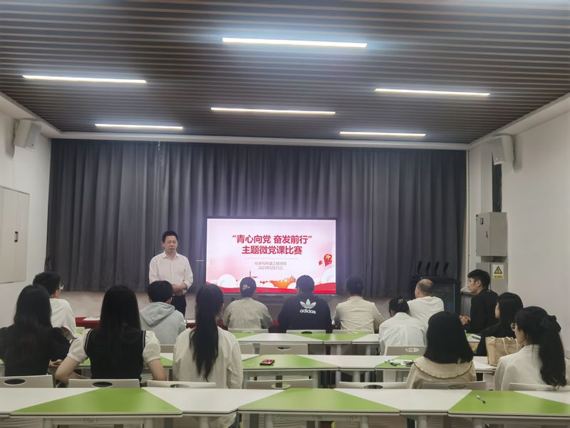 为扎实开展学习贯彻习近平新时代中国特色社会主义思想主题教育,凝聚广大师生党员在奋进中国式现代化赶考路上的磅礴力量,突出“三抓”工作要求,践行“三全六专”育人理念,推动主题教育走深走心走实。5月25日晚上,化环公司在公司一楼员工能力发展中心举办“青心向党 奋发前行”主题教育微党课比赛。公司党委书记章兵出席,各员工党支部书记担任评委,各员工党支部党员代表参加了本次比赛。