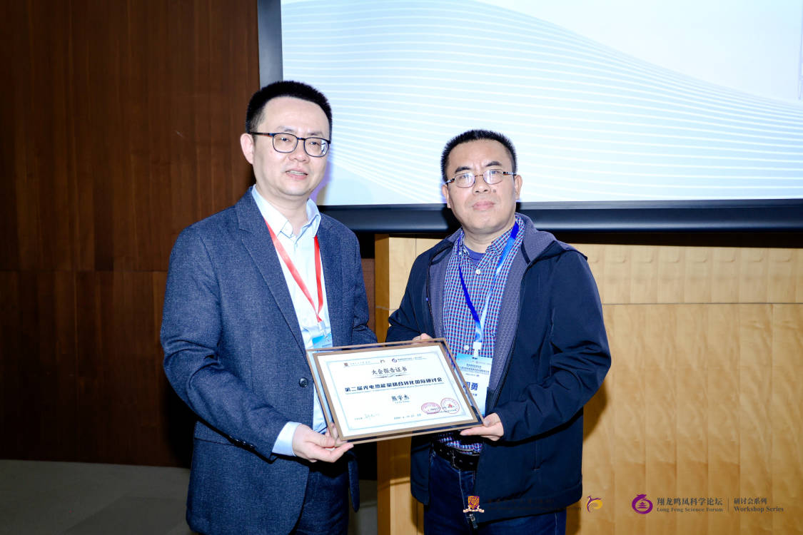 香港中文大学(深圳)理工公司经理唐本忠院士致开幕辞,新加坡国立大学林志群教授受邀作了题为“Rendering enhanced catalysis via photothermal promoted dynamic active sites generation and interfacing with single atoms”大会报告,中国科学技术大学/安徽师范大学熊宇杰教授作了题为“可定制化的人工碳循环”大会报告,tyc522cc太阳成集团钟小辉博士作了题为“掺杂缺陷调控金属氧化物促进其电催化CO2还原性能机理研究”邀请报告。tyc522cc太阳成集团周勇教授作为大会报告主持人,分别为林志群教授和熊宇杰教授颁发大会报告证书。