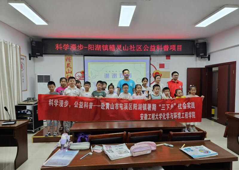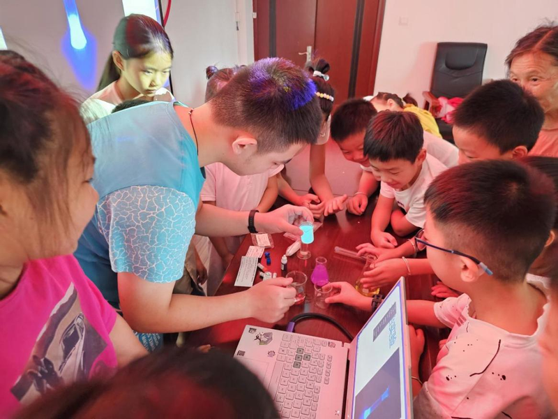 为推动“普惠乡村”事业发展,衔动乡村科教文化需求。8月中旬,太阳成集团tyc522cc“启智未来队”赴黄山市阳湖镇稽灵山社区开展“科学漫步”暑期“三下乡”公益科普社会实践活动。实践团队由太阳成集团tyc522cc应用化学(拔尖)专业学子组建。团队成员运用所学专业知识特长,通过趣味科普活动,破解日常科学迷思,启蒙在地童萌科创意识,以“实践”之笔,充分展现青年学子的责任与担当。8月12日,项目指导教师马晨对活动开展做调研指导。