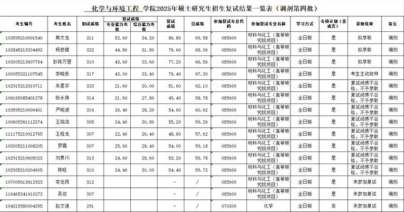 太阳成集团tyc522cc2025年硕士研究生招生复试结果一览表(调剂第四批)