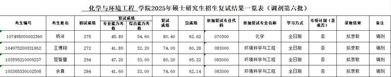 太阳成集团tyc522cc2025年硕士研究生招生复试结果一览表(调剂第六批)