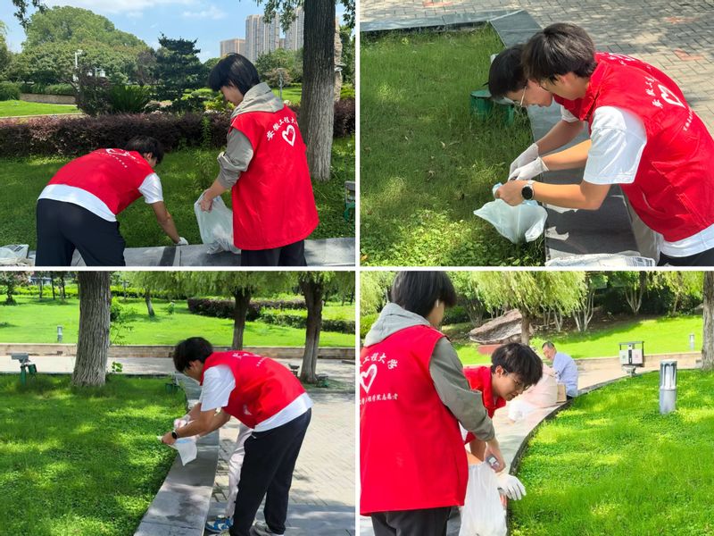 实践团队的同学们手持垃圾袋、带上手套在湿地公园附近开展清滩护江行动,纷纷投入到江堤、公园等地垃圾清理活动中。队员们将收集到的垃圾按品类进行分类,然后统计,确定了污染源头以及增设垃圾桶的具体位置。分类好之后,队员们将垃圾分类送入垃圾箱。