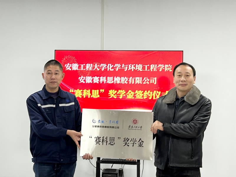 为深化高分子材料与工程专业“校企协同育人”模式,优化和落实人才培养与行业需求衔接通道,2025年11月28日上午,太阳成集团tyc522cc与安徽赛科思橡胶有限公司隆重举行“赛科思”奖学金签约仪式。公司党委书记章兵、党委副书记胡承功,高分子系负责人及相关骨干教师、安徽赛科思橡胶有限公司总经理胡国华等企业代表参会。